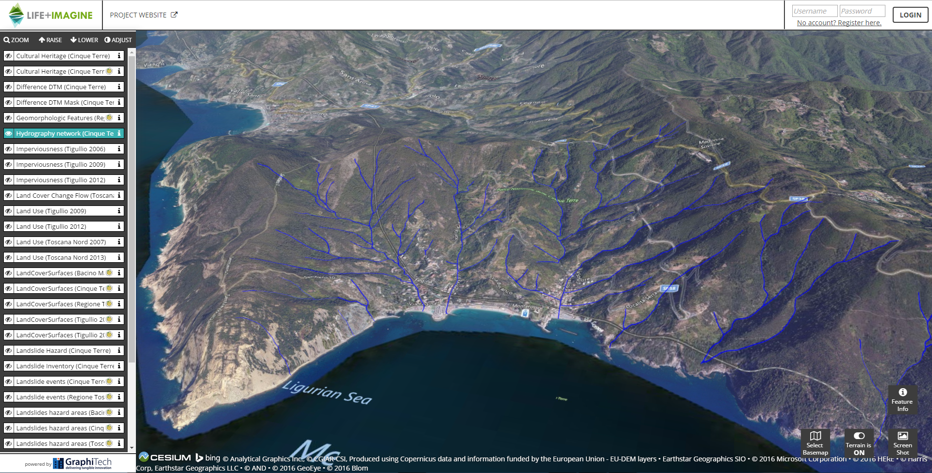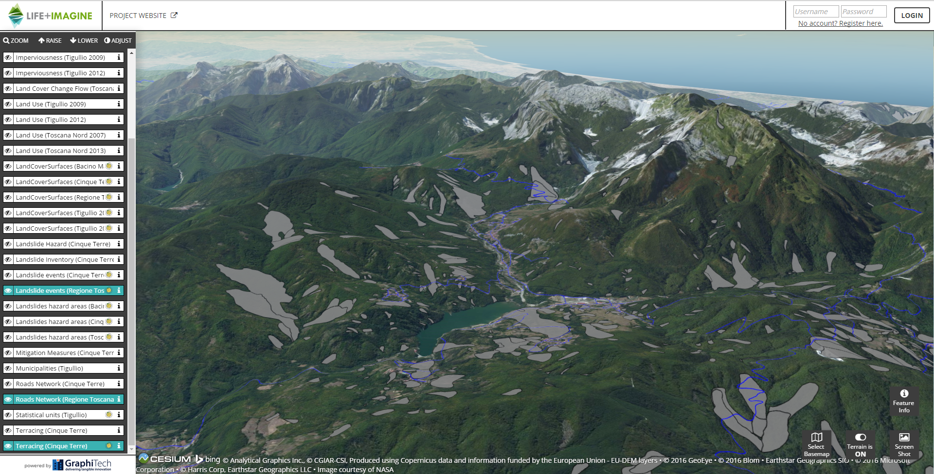 For non-expert users, the LIFE+IMAGINE 3D Client allows the visualization of the different datasets used in the pilot applications. Once identified the datasets of inter-est, the system views them through WMS (Web Mapping Services). Specifically, WMS refers to the following list of data (in alphabetical order)